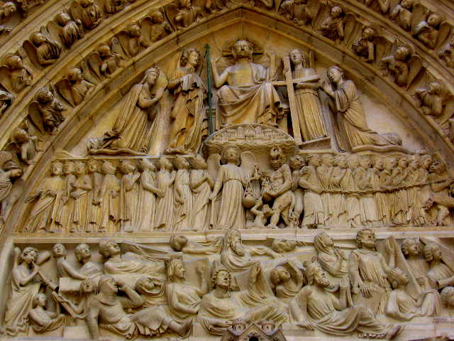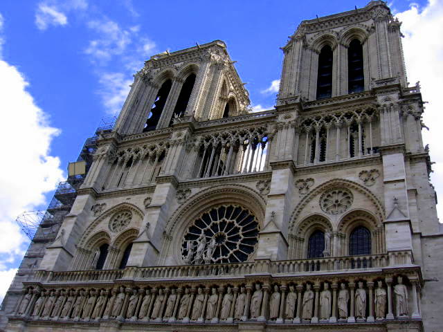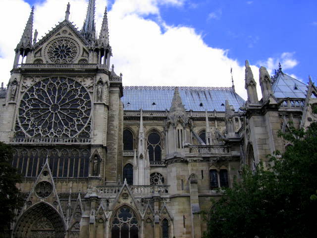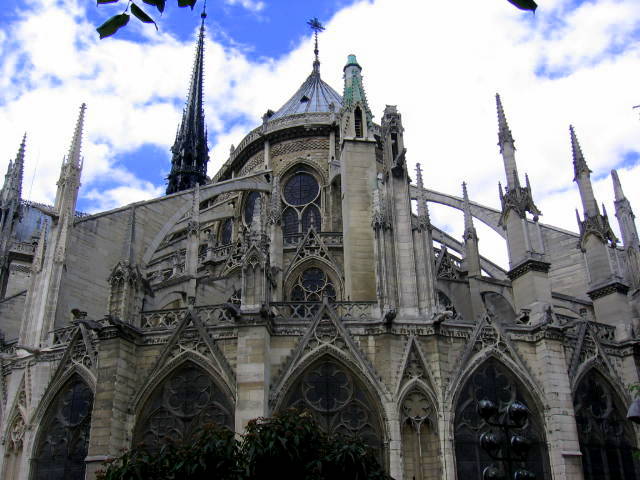 Paryžiaus Dievo Motinos katedros vaizdas iš galo. Ją kasmet aplanko 13 milijonų lankytojų. Tai bent! Pastatas pradėtas statyti 1163 m. vyskupo Maurice’o de Sully iniciatyva, o baigtas po kelių šimtų metų, XIV a. viduryje. Tai pastatas, kuriame prieš akis skleidėsi istorija – nuo Napoleono I karūnavimo 1804 m. iki François Mitterrand’o laidotuvių 1996 m.