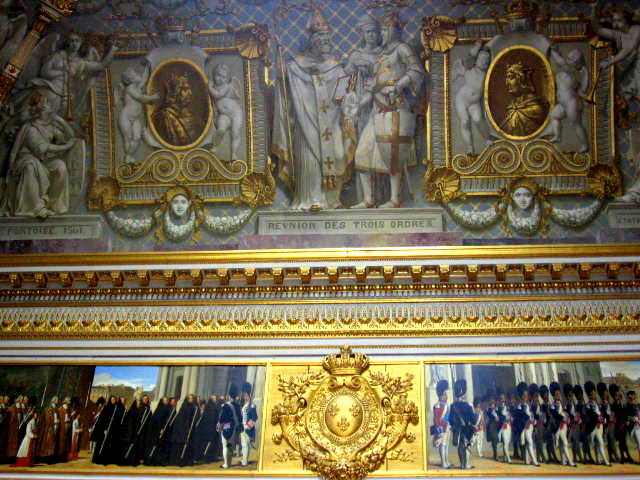 Versalio rūmai. Tai buvusi Prancūzijos karalių rezidencija, prancūziškojo klasicizmo architektūros paminklas. Rūmų interjerą sudaro: Didieji karaliaus ir karalienės apartamentai, Karalių koplyčia, Veidrodžių galerija – ilgis 73 m, plotis 10,5 m – joje yra 17 didelių langų, priešais kuriuos ant sienos kabo 17 tokio pat dydžio veidrodžių; Karo ir Taikos salonai. Šių rūmų interjerą puošia vertingi paveikslai, bronzinės ir marmurinės skulptūros, gobelenai ir baldai iš brangiausių medžių.