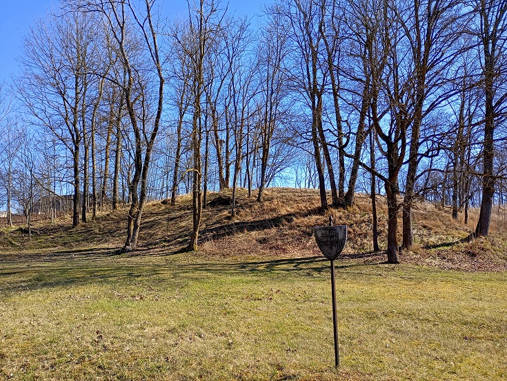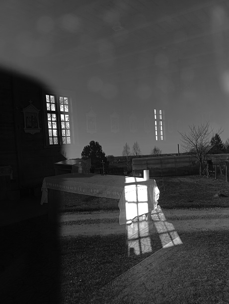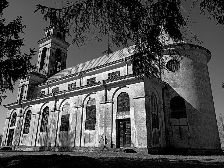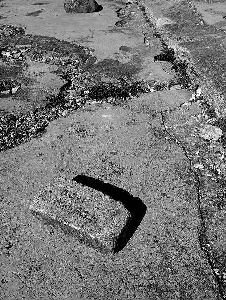Ant apleistos bažnyčios laiptų guli plyta su užrašu Bornholm. Tai Baltijos jūros sala, priklausanti Danijai.