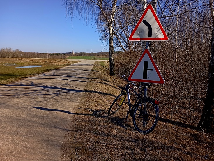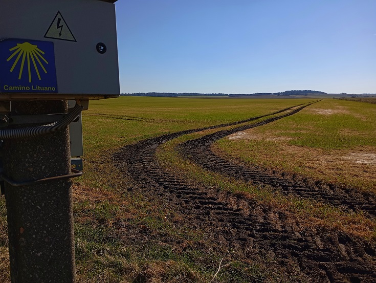 Visur priklijuota labai daug piligriminio maršruto ženkliukų. Pakelia nuotaiką.