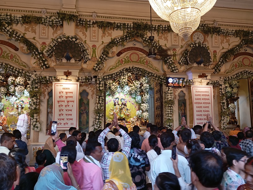 Šventykla garsėja gyvomis kirtanų tradicijomis, harinama procesijomis Vrindavano gatvėse, gilia bhakti atmosferai būdinga ramybe ir dvasine energija. Čia nuolat renkasi piligrimai iš viso pasaulio, o šventykla laikoma Šrilos Prabhupados tarnystės vainiku. Naktį šventykla gražiai apšviesta, joje nuolat daugybė piligrimų.