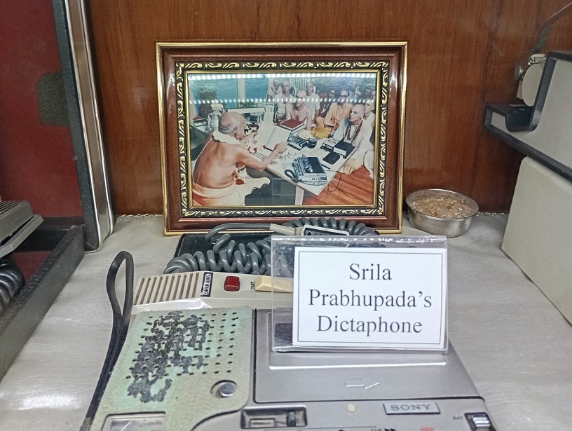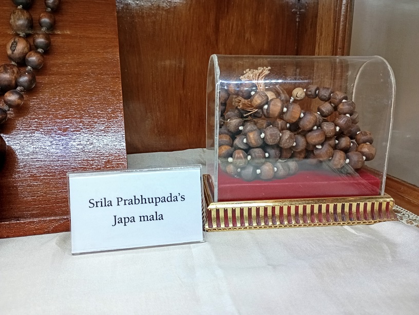 Kurį laiką Šrila Prabhupada gyveno ir pamokslavo šioj šventykloj, tad čia likę labai daug jo daiktų, šiandien jau tapusiais relikvijom. Maldos karoliai – brangiausia relikvija.